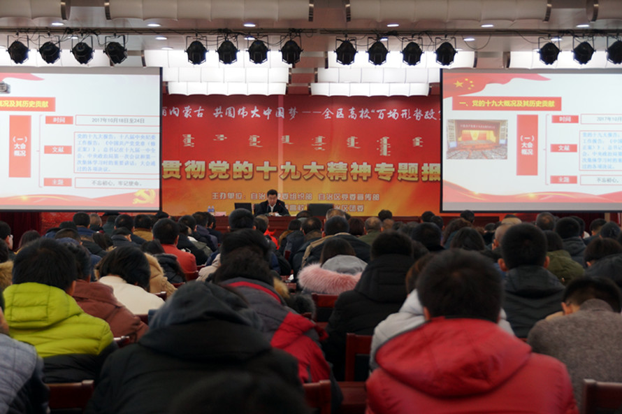 12月4日下午,自治區(qū)宣講團(tuán)成員、發(fā)改委原巡視員鐵鋼走進(jìn)內(nèi)蒙古大學(xué)交通學(xué)院作形勢(shì)政策報(bào)告,面向師生宣講黨的十九大精神。學(xué)院領(lǐng)導(dǎo)、副科級(jí)以上干部、教師和學(xué)生代表近400人參加了報(bào)告會(huì)。