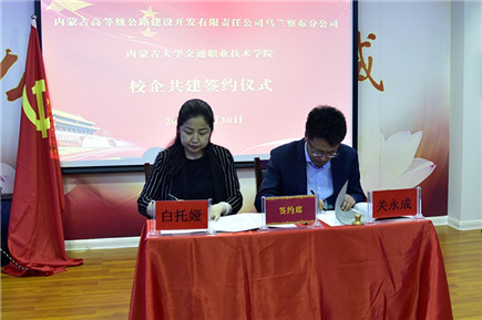 2019年5月30日上午,內(nèi)蒙古大學(xué)交通學(xué)院與內(nèi)蒙古高路公司烏蘭察布分公司校企合作簽約儀式在企業(yè)培訓(xùn)中心會議室舉行。內(nèi)蒙古高路公司烏蘭察布分公司總經(jīng)理關(guān)永成、黨委辦公室主任郝宗濤,學(xué)院黨委副書記、紀委書記白托婭和學(xué)院相關(guān)部門負責人出席簽約儀式。