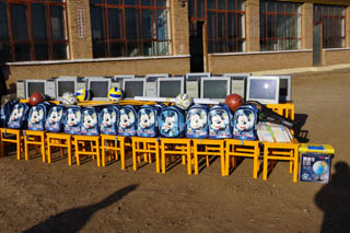 儀式上,我院向鄂爾棟鎮(zhèn)中心校及學(xué)生捐贈(zèng)了電腦30臺(tái)、學(xué)生桌椅30套、書(shū)包及學(xué)習(xí)用品25套、體育用品、教學(xué)儀器、課外讀物,總價(jià)值達(dá)7萬(wàn)多元。其中書(shū)包、體育用品、教學(xué)儀器、課外讀物的購(gòu)買(mǎi)款項(xiàng)是由我院工會(huì)組織全院教工捐贈(zèng)的,包括學(xué)院圖管會(huì)十名學(xué)生干部捐贈(zèng)的100元。