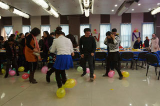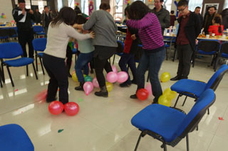 趣味運(yùn)動之四人夾氣球接力賽