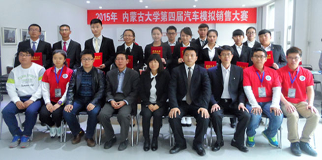 5月6號(hào)下午,內(nèi)蒙古大學(xué)第四屆汽車(chē)模擬銷(xiāo)售大賽決賽在交通學(xué)院汽車(chē)工程系汽車(chē)銷(xiāo)售展廳舉行。出席本次比賽的嘉賓有:內(nèi)蒙古大學(xué)交通學(xué)院黨委副書(shū)記、紀(jì)委書(shū)記白托婭,黨群工作部部長(zhǎng)李廣武,教務(wù)處副處長(zhǎng)趙麗珠,學(xué)工處副處長(zhǎng)季秋成,學(xué)工處副處長(zhǎng)馮俊杰,汽車(chē)工程系副主任李政,運(yùn)昌駕校業(yè)務(wù)經(jīng)理蘇和先生。內(nèi)蒙古泰隆汽車(chē)服務(wù)公司東風(fēng)標(biāo)致4S店總經(jīng)理周永新女士、中升豐田汽車(chē)服務(wù)營(yíng)銷(xiāo)有限公司銷(xiāo)售總監(jiān)任彥兵先生、神龍公司營(yíng)銷(xiāo)培訓(xùn)講師姚延剛老師、第三屆汽車(chē)模擬銷(xiāo)售大賽總冠軍陳濤同學(xué)擔(dān)任決賽評(píng)委。汽車(chē)工程系黨總支鐘懷軍書(shū)記致詞并宣布比賽開(kāi)始。
