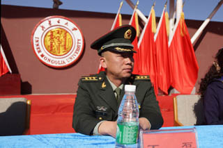 內(nèi)蒙古大學副校長張吉維,內(nèi)蒙古大學黨委委員、交通學院黨委書記孫智憑,內(nèi)蒙古陸軍預(yù)備役步兵第30師副參謀長王磊、軍務(wù)科長孟昭輝,內(nèi)蒙古大學黨政辦副主任溫毅剛、保衛(wèi)處副處長金山;內(nèi)蒙古大學交通學院常務(wù)副院長董平,黨委副書記、紀委書記白托婭,副院長孫恒,副院長武鈞,黨委委員、教務(wù)處處長趙志蒙以及相關(guān)職能部門負責人、系部黨總支負責人出席開幕式并在主席臺就坐。我院師生2300余人參加了開幕式。
