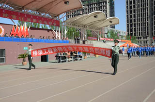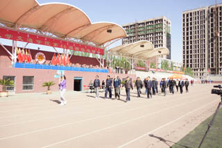 開幕式由黨政辦公室主任胡利春主持,在雄壯高昂的運動員進行曲中,各系學生和教工方隊,機關(guān)、教輔單位職工方隊,步伐矯健,口號響亮,依次走過主席臺接受檢閱。隆重的入場式后,開幕式舉行了莊嚴的升國旗儀式,在嘹亮的國歌聲中,五星紅旗冉冉升起。