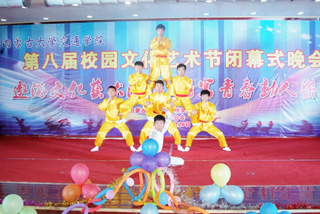 ![]() 為進(jìn)一步豐富交通學(xué)院的校園文化生活,營造積極向上,清新高雅,健康文明的校園文化氛圍,學(xué)工處(團(tuán)委)組織開展了為期一個(gè)月的校園文化藝術(shù)節(jié)活動(dòng)。5月28日,閉幕式晚會(huì)在交通學(xué)院多功能廳A453舉行。