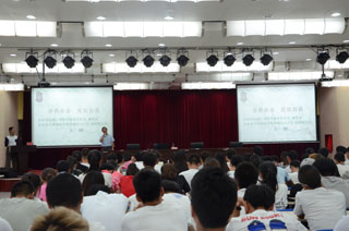 學(xué)工處副處長(zhǎng)、就業(yè)指導(dǎo)中心主任季秋成主持講座 |