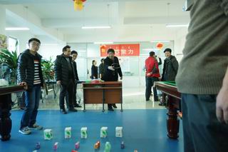 活動(dòng)現(xiàn)場(chǎng)張燈結(jié)彩,一片歡聲笑語。金鉤釣魚、好運(yùn)飛鏢、幸福圈套、隔桌吹蠟、快樂乒乓夾、蒙眼摸鼻等六個(gè)貼近生活、充滿趣味的游藝項(xiàng)目,給廣大教職工奉獻(xiàn)了一頓豐富多彩的娛樂大餐。游藝中,有比技巧的,有比準(zhǔn)勁的,有比運(yùn)氣的……大家個(gè)個(gè)勁頭十足,一改往日的嚴(yán)謹(jǐn),沉醉在游戲帶來的樂趣之中,盡情釋放著平日工作的壓力,盡情享受著游戲活動(dòng)帶來的快樂,一年以來教書育人的辛勞在這一刻全部隨著2015年蕩滌而去,新一年熱火朝天的干勁油然而生。