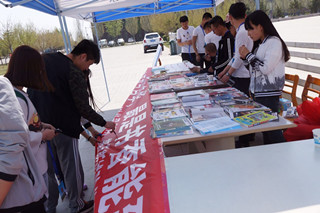 星星之火,可以燎原;點點知識,充實人生。4月23日至26日,圖書館樓前人頭攢動,醒目的宣傳標(biāo)語、宣傳展板和圖書展臺時刻提醒著讀者多讀書、讀好書、會讀書,讓更多的師生參與閱讀,讓書香飄滿校園。