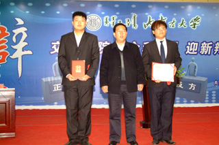 學院學工處副處長、團委副書記高飛(右)、 組織宣傳科副科長董小紅(左) |