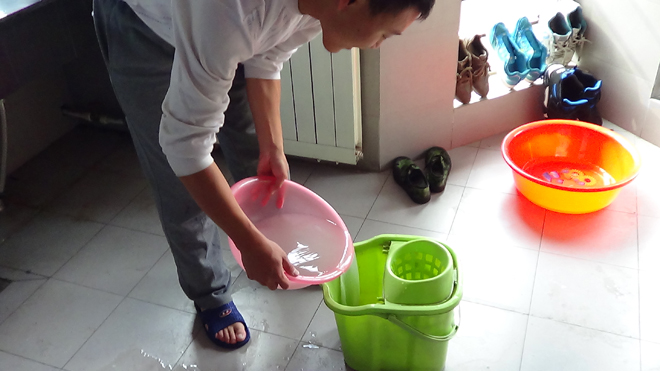 一等獎(jiǎng) 作品名稱:一水多用 作品簡介:現(xiàn)在水資源嚴(yán)重短缺,我們應(yīng)該學(xué)會(huì)節(jié)約用水,最實(shí)用簡單的方法就是一水多用,這組照片是一個(gè)男生在宿舍的用水情況,他用一盆水洗頭,洗拖布打掃宿舍,最后才將一盆水倒掉。我們應(yīng)該向他學(xué)習(xí),學(xué)會(huì)一水多用。 土木1302班 楊蕓蕓 |