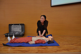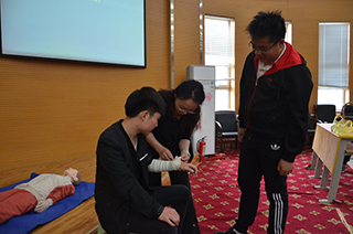 內蒙古大學藝術學院醫(yī)務室主任塔娜教授現場講意外傷害如何包心肺復蘇術的操作流程 | |