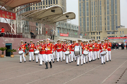 擔任運動會開閉幕式現(xiàn)場演奏任務的學院軍樂團
