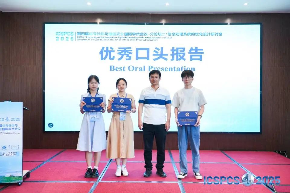 組委會(huì)對現(xiàn)場口頭報(bào)告表現(xiàn)優(yōu)異的學(xué)者頒發(fā)【優(yōu)秀口頭報(bào)告獎(jiǎng)】,通過表彰優(yōu)秀的科研人才與科研成果,希望能夠激勵(lì)更多學(xué)者在領(lǐng)域前沿不斷探索。至此,第四屆信號(hào)處理與通信安全國際學(xué)術(shù)會(huì)議(ICSPCS 2025)在專家學(xué)者熱烈討論的氛圍下圓滿落幕!