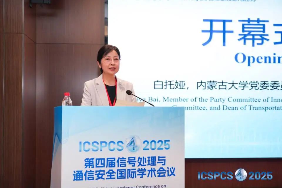 內(nèi)蒙古大學(xué)張宏教授主持開幕式。內(nèi)蒙古大學(xué)黨委委員、交通學(xué)院黨委副書記、院長白托婭為大會(huì)致辭,對蒞臨本次會(huì)議的各位專家學(xué)者致以最真誠的問候與熱烈的歡迎,同時(shí)指出高質(zhì)量的國際會(huì)議不僅給相關(guān)領(lǐng)域的科研人員和專家學(xué)者搭建了交流溝通的平臺(tái),而且能有效推動(dòng)學(xué)院學(xué)科的建設(shè)與發(fā)展。她衷心祝愿各位專家學(xué)者在未來的合作中取得更加豐碩的成果,共同為信號(hào)處理與通信安全領(lǐng)域的進(jìn)步與發(fā)展注入動(dòng)力。