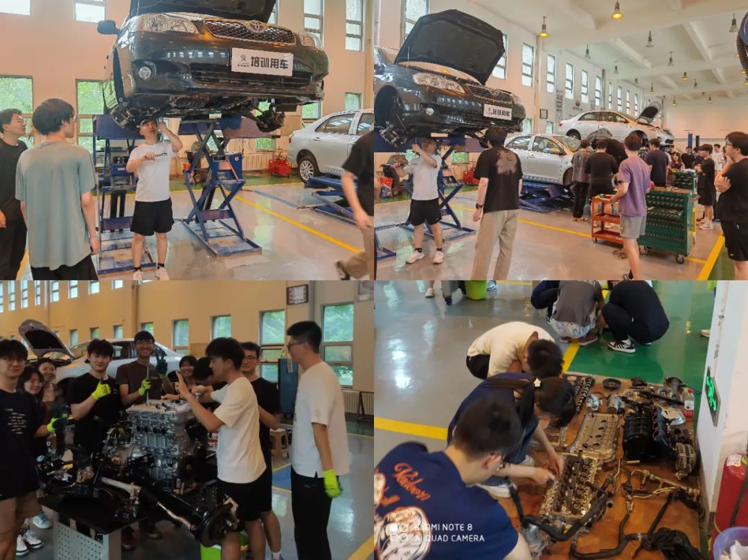 作為學院的傳統(tǒng)實踐課程,“汽車拆裝實習”涵蓋發(fā)動機、變速器、底盤、電氣系統(tǒng)等核心部件的拆解與組裝。在指導教師示范后,學生們分組對實訓用車進行系統(tǒng)拆裝。通過親手拆裝,課本上的平面圖紙變成了立體的機械結構,學生們對配氣正時、離合器工作原理等難點有了更直觀認識。